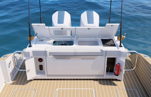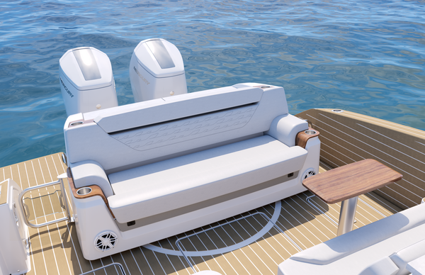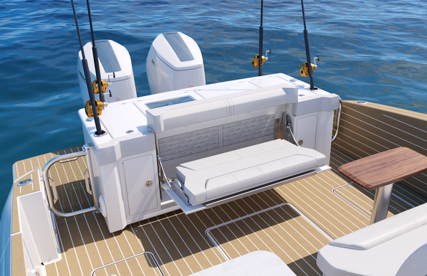 Choose between the Buffet Lounge Module for relaxed entertaining or the Adventure Module for active days on the water.Aft-Facing Cockpit Seating with Storage