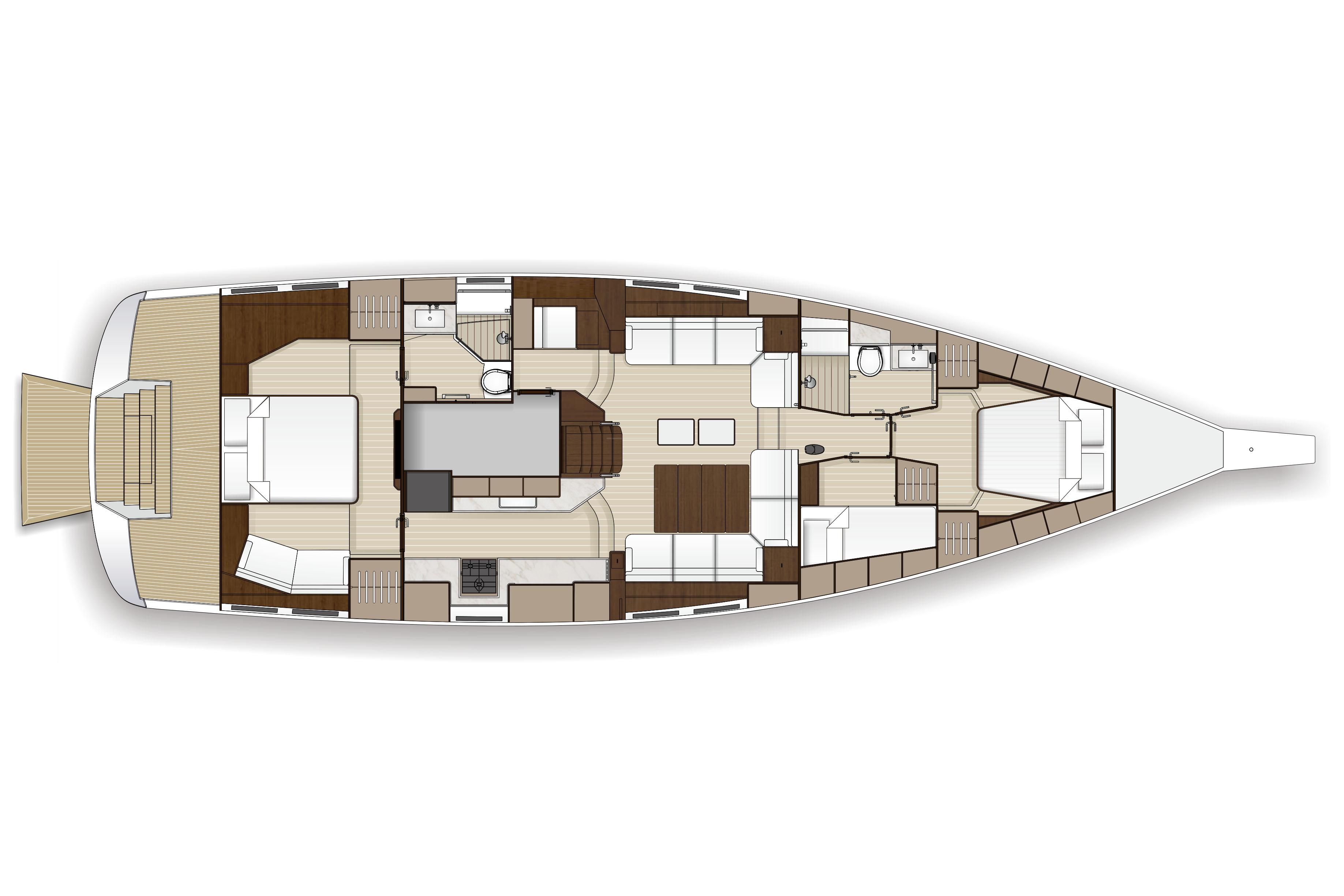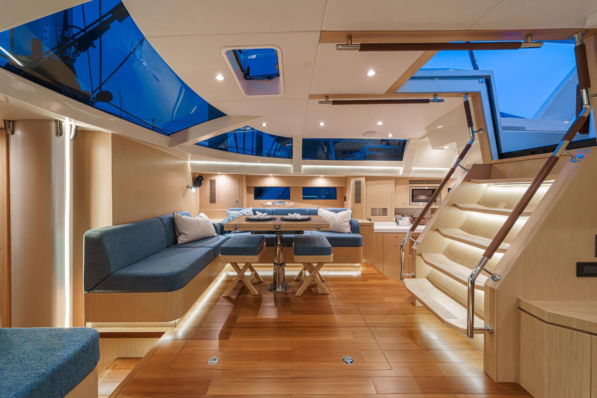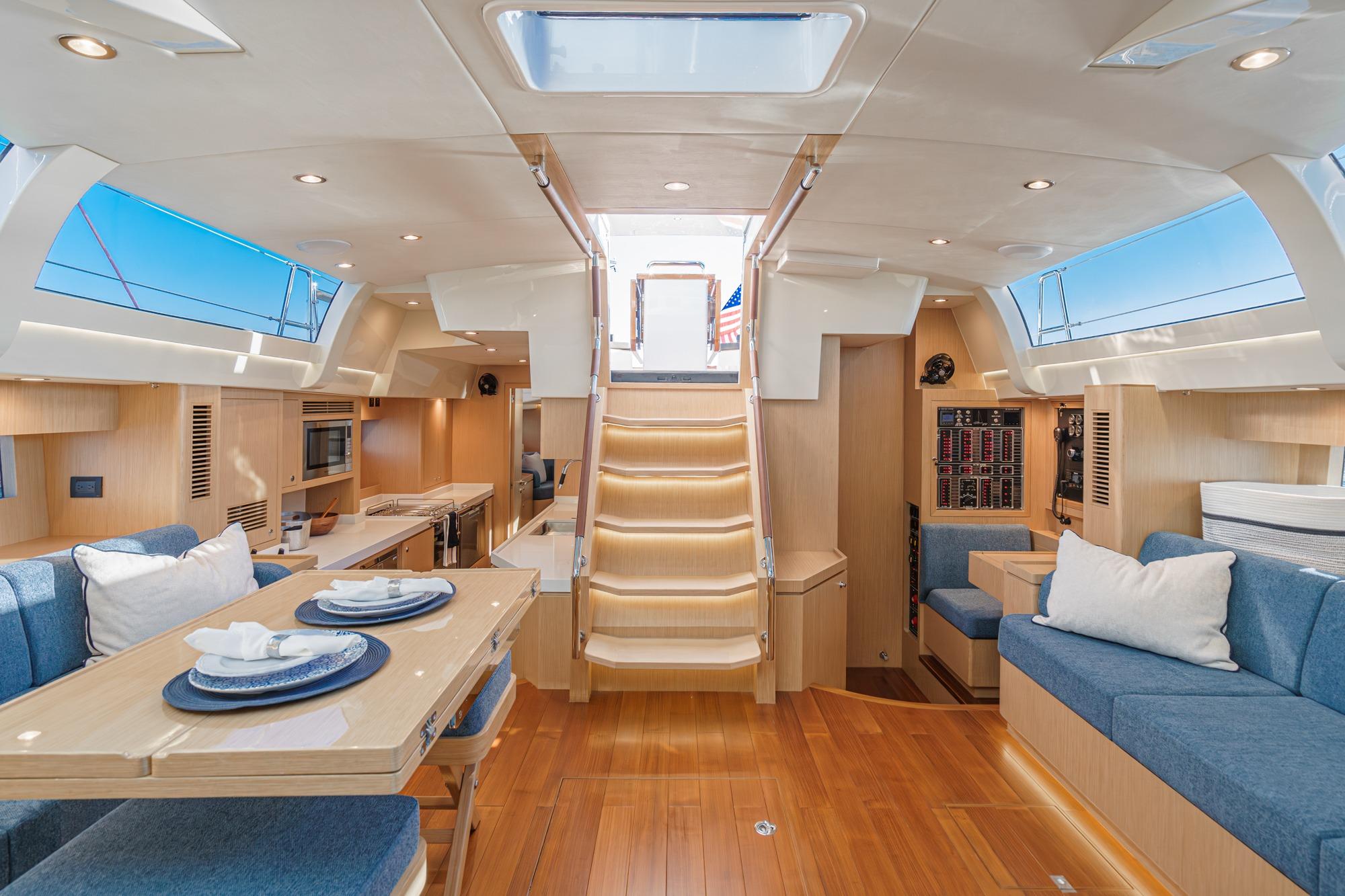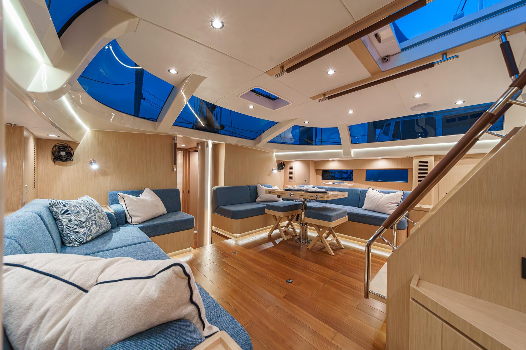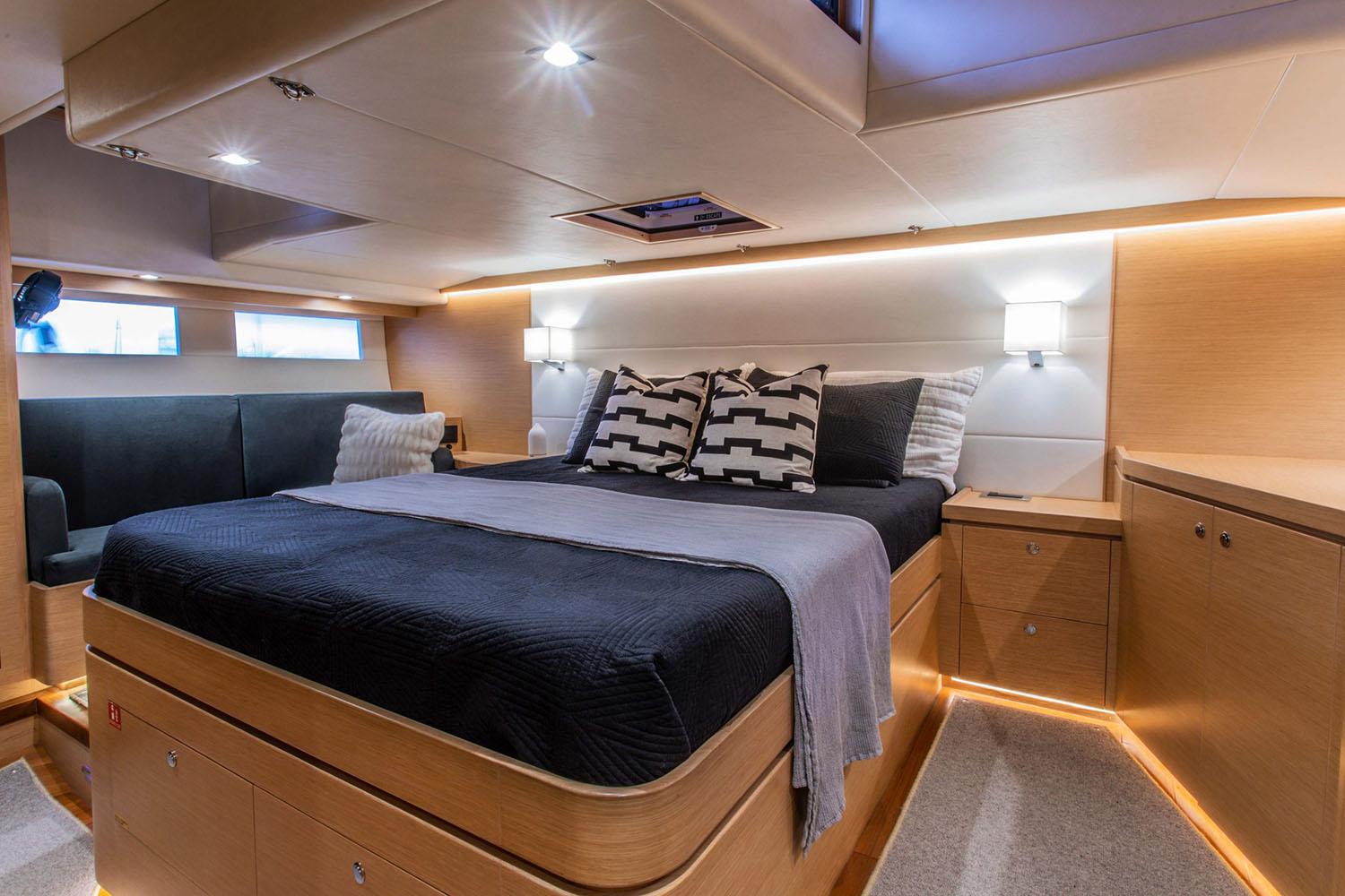 Below decks the bright and voluminous three-cabin interior is warm and welcoming. Natural light abounds and the layout is configured for luxurious comfort and enjoyable living while underway, coupled with a true sense of home when settled in at your destination. No horizon is too distant for this award winning performance cruiser.