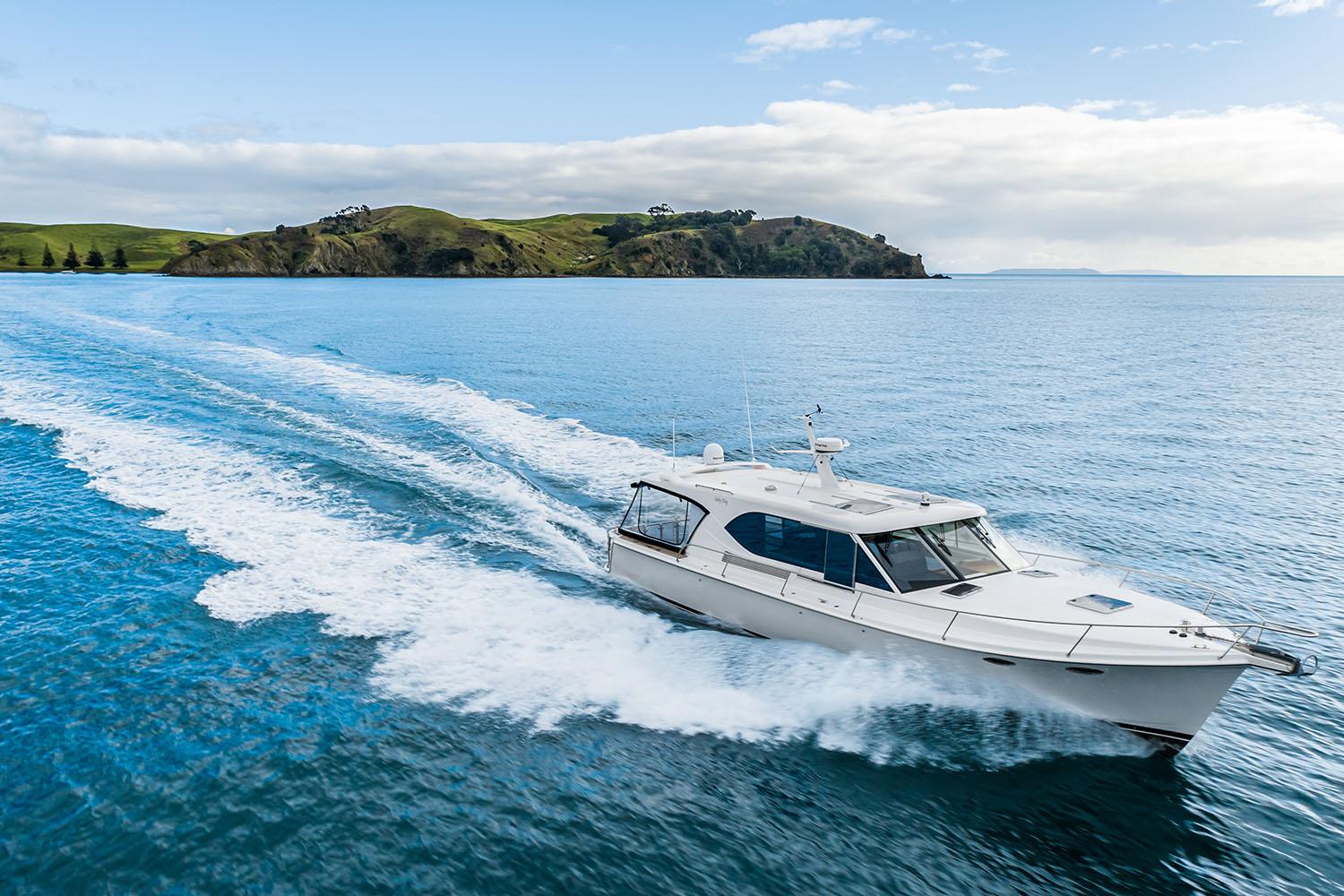 She is the perfect platform for fun, adventure, safety, panoramic views, and overall comfort during weekend jaunts or long range cruising.