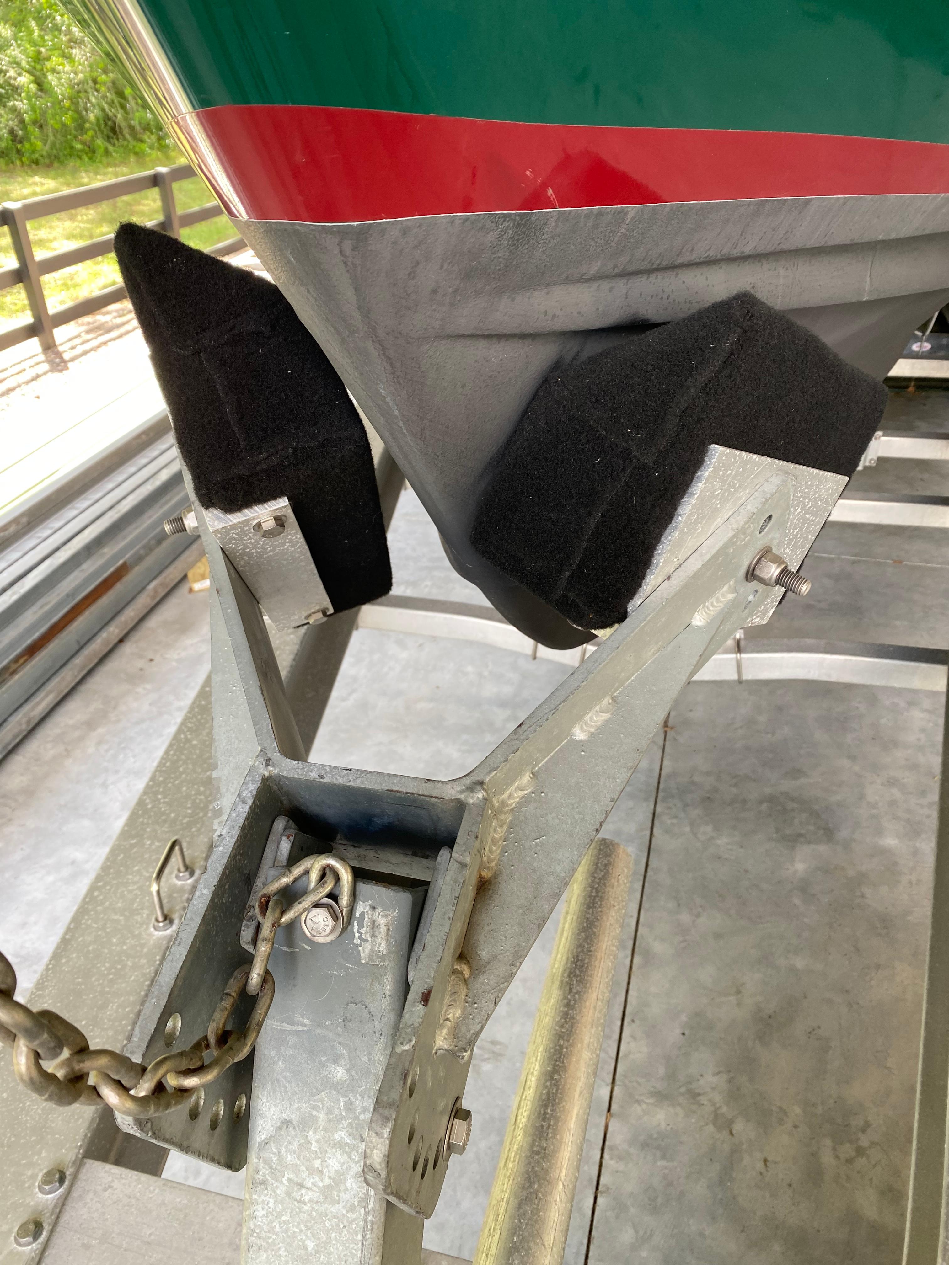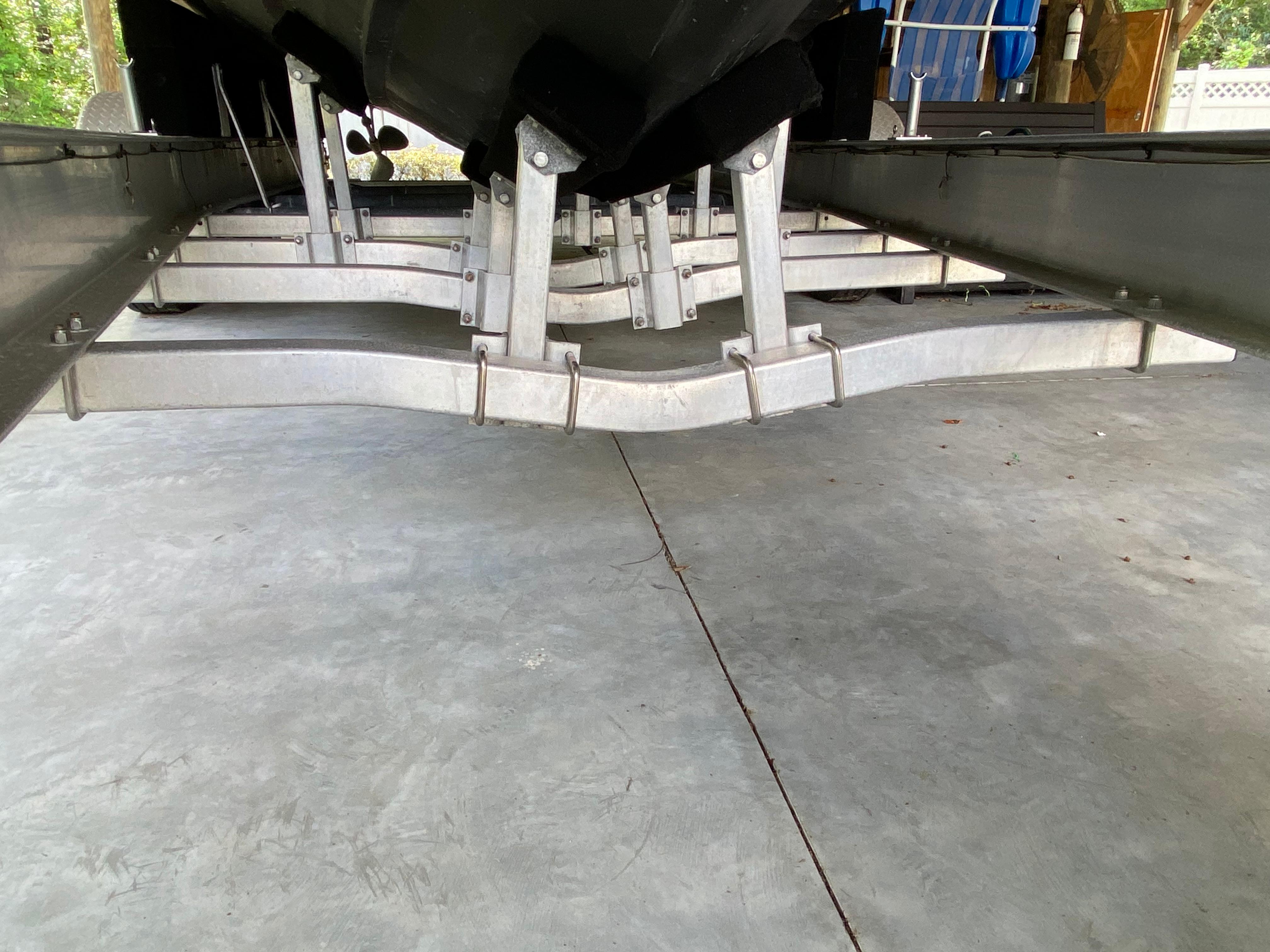 The trailer is an All American Trailers triple axel in aluminum from south Florida custom built for this boat. The trailer was put together brought to Jacksonville for a dry fit taken back to south Florida for fine tuning and then brought back to Jacksonville. All aluminum, commercial trucking tires, Hydrastar brakes, double spares, SS calipers and rotors.