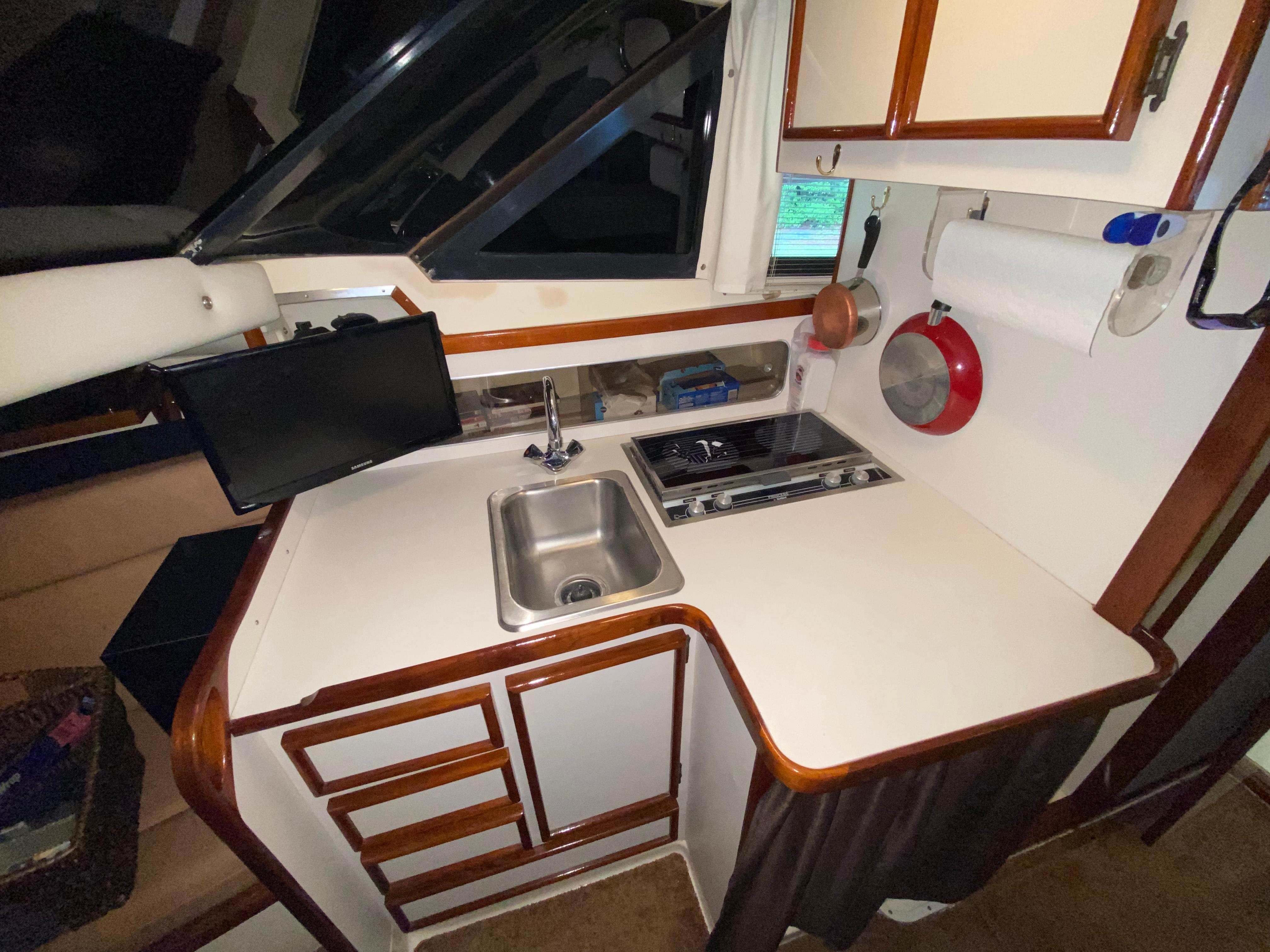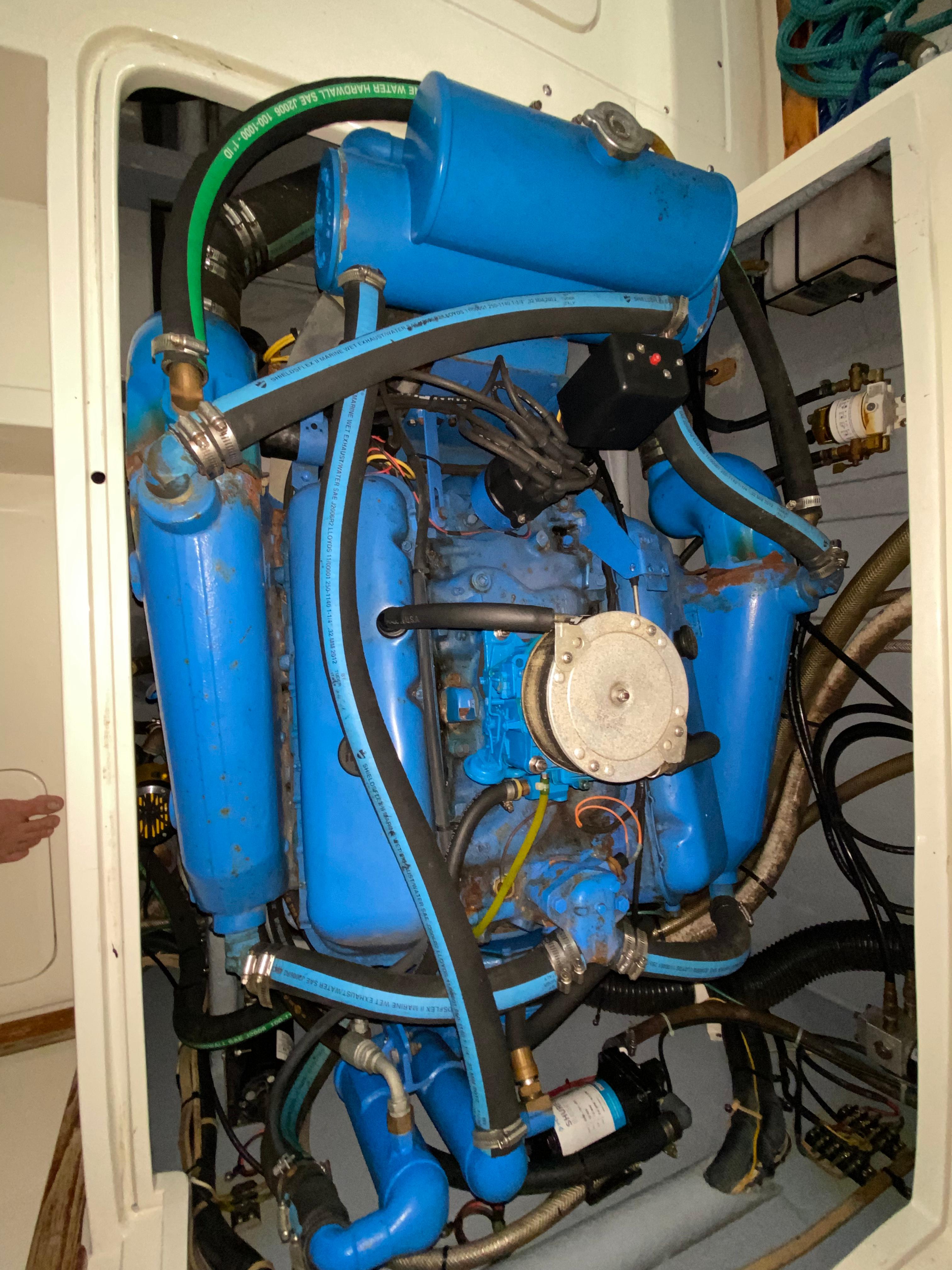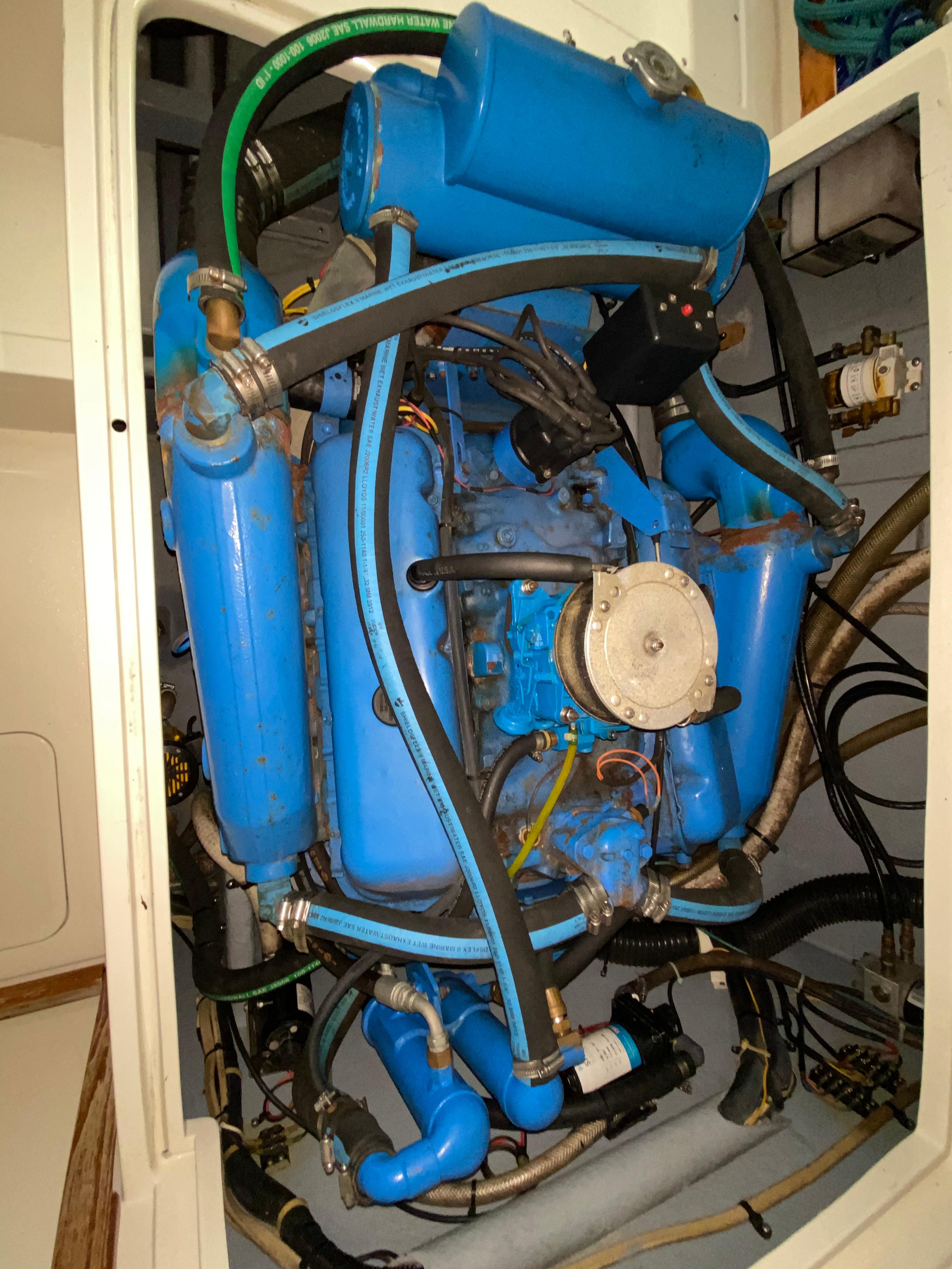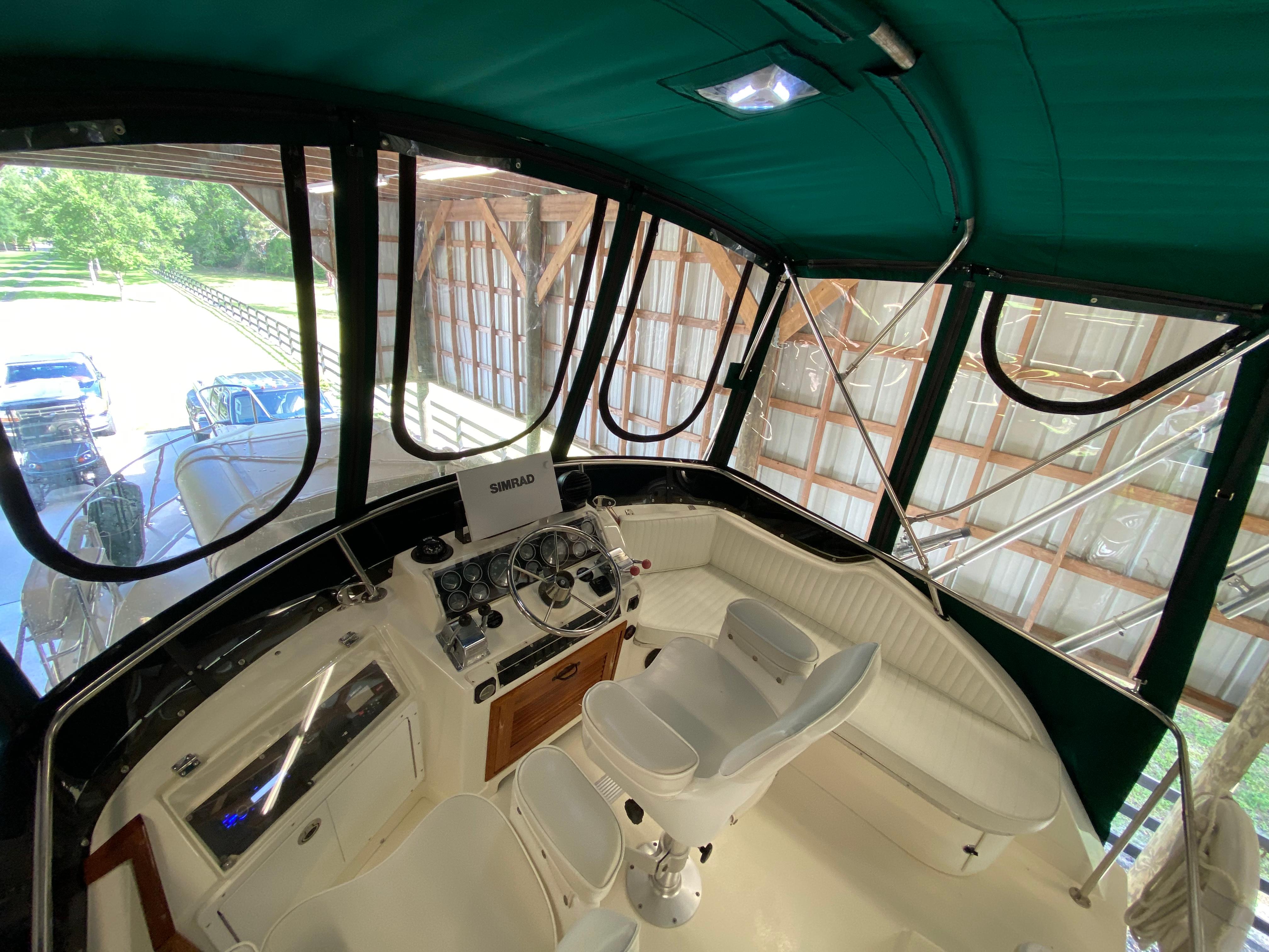 The boat has like new Awlgrip paint, new upholstery in and out, engines pulled out and rebuilt, painted and reinstalled. All new sound insulation finely installed. Tower with outriggers, canvas enclosure, electronics. Bottom was stripped, regelcoated, epoxy coated, primed and painted. She has a ditch box of safety gear on deck with life raft. The aft swim platform has a fiberglass box for storage. The cockpit houses a custom cabinet for the Honda generator, a fighting chair, rocket launcher, wash down, livewell, rod holders, storage.