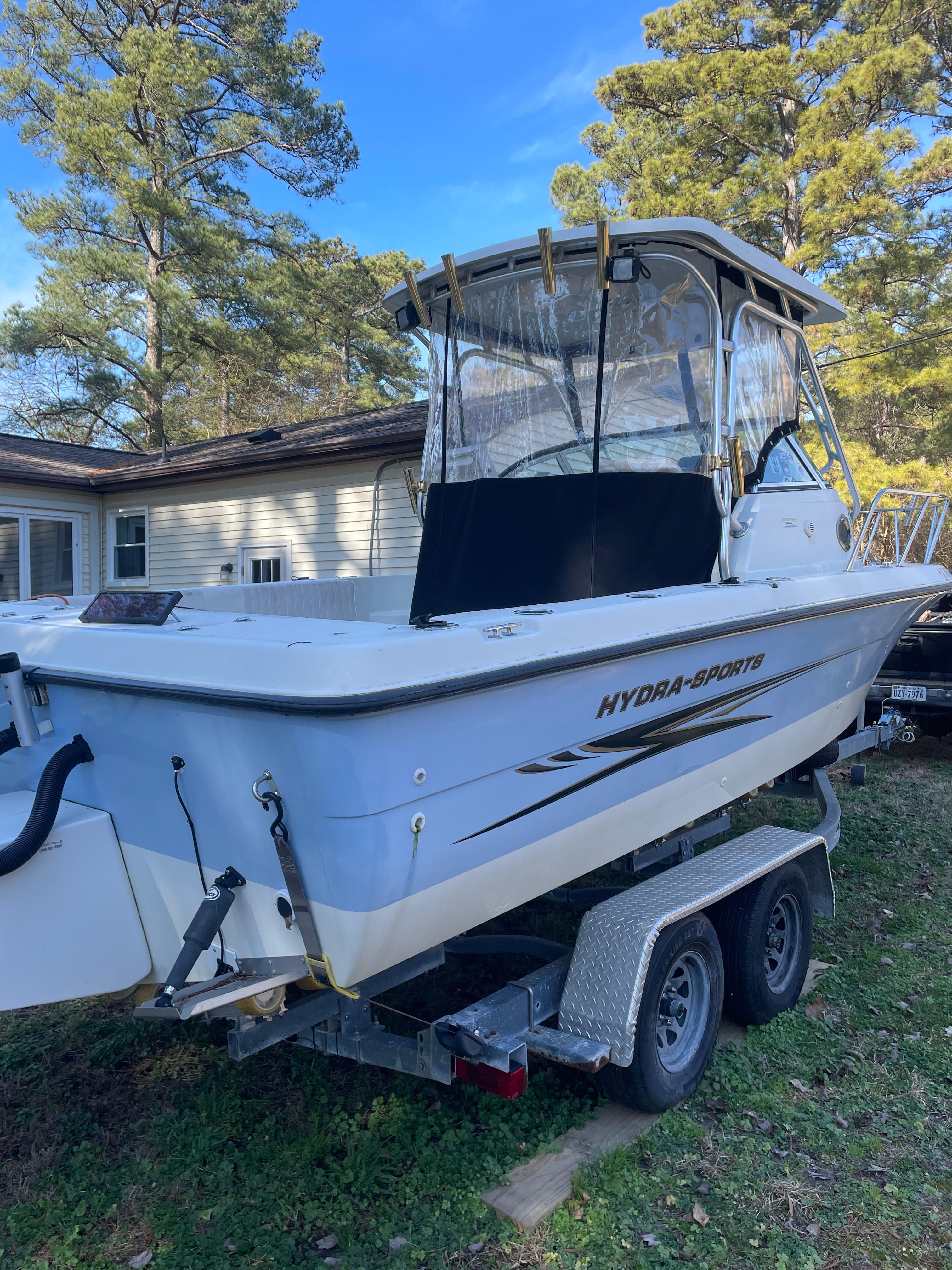 The 2004 Hydra-Sports 230 Walk-Around, powered by a 2017 300HP Yamaha with only 175 hours. Very spacious cockpit area for fishing, or entertaining guests. Small cabin with just enough space to provide some shade and comfort when needing to escape the sun or elements.