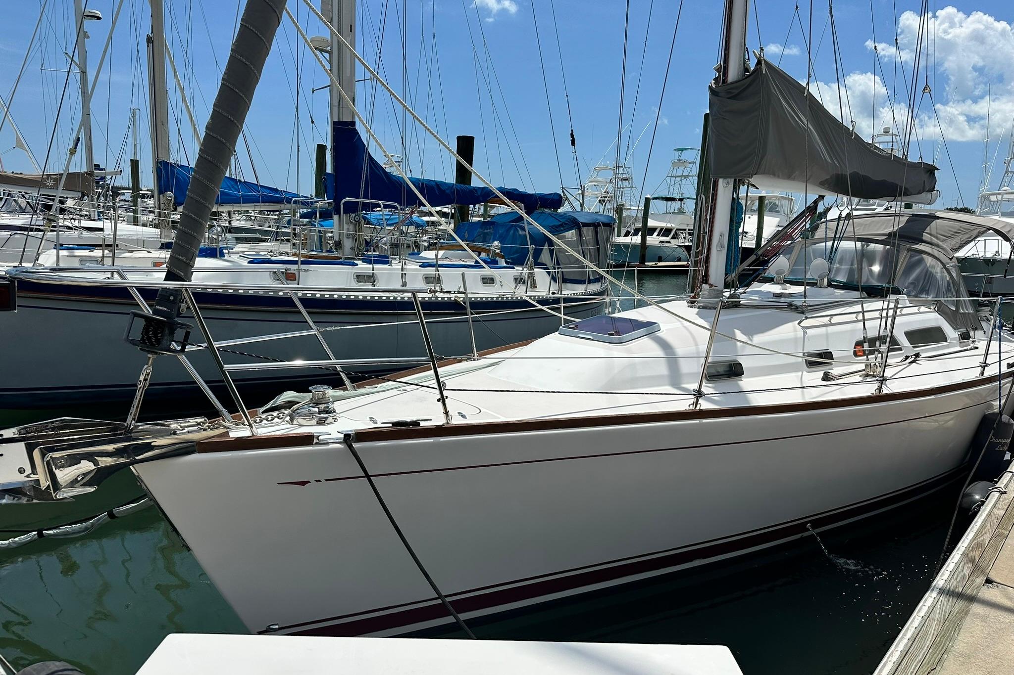 "Champagne Lady" is a one owner beauty that has spent her entire life in the North East Florida area doing coastal cruising and local sailing. Her knowledgeable owner has maintained her in top condition. She has been monthly cleaned above and below the water. Regular engine maintenance and bottom painting has kept her in ready to go condition.