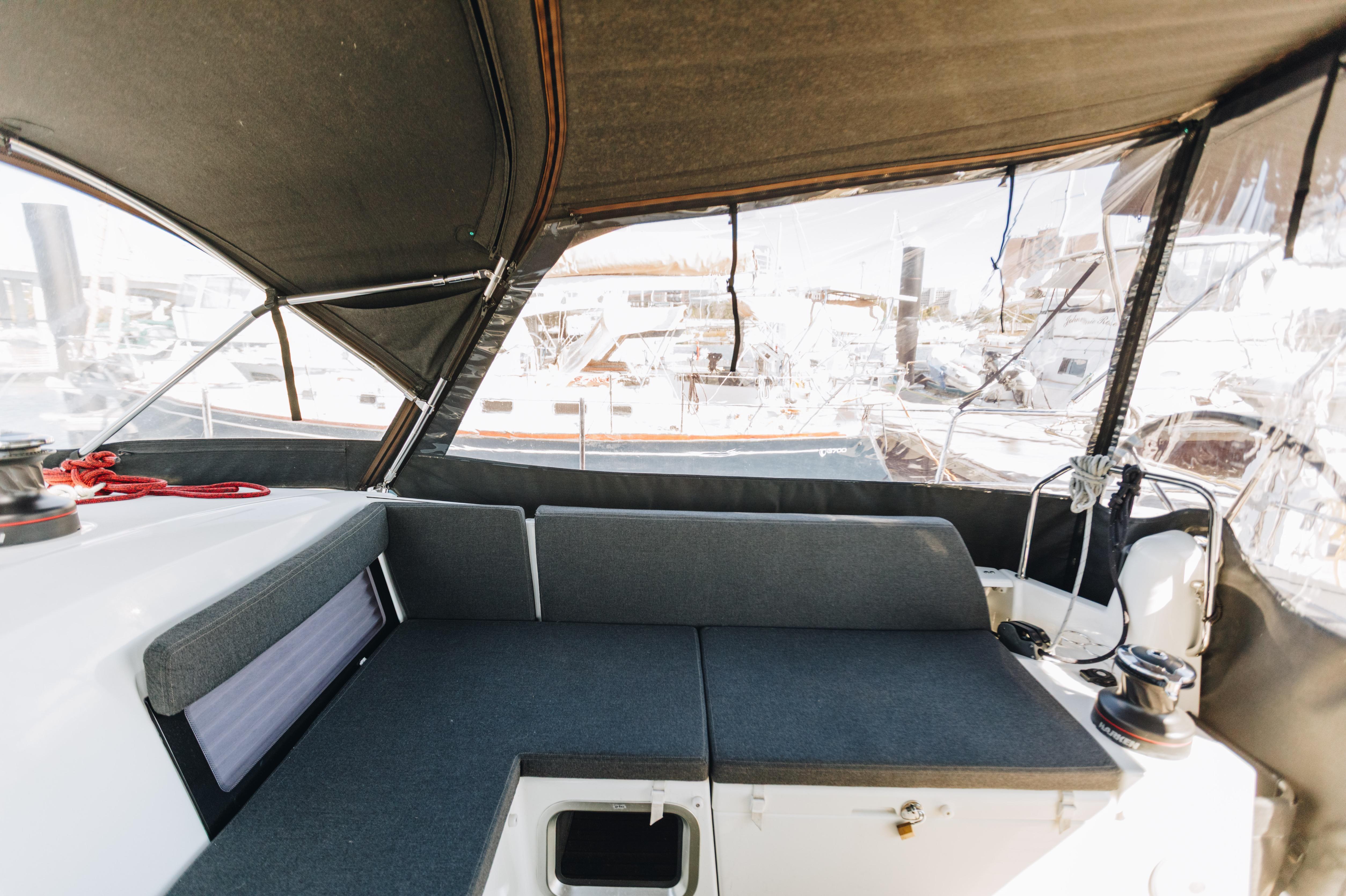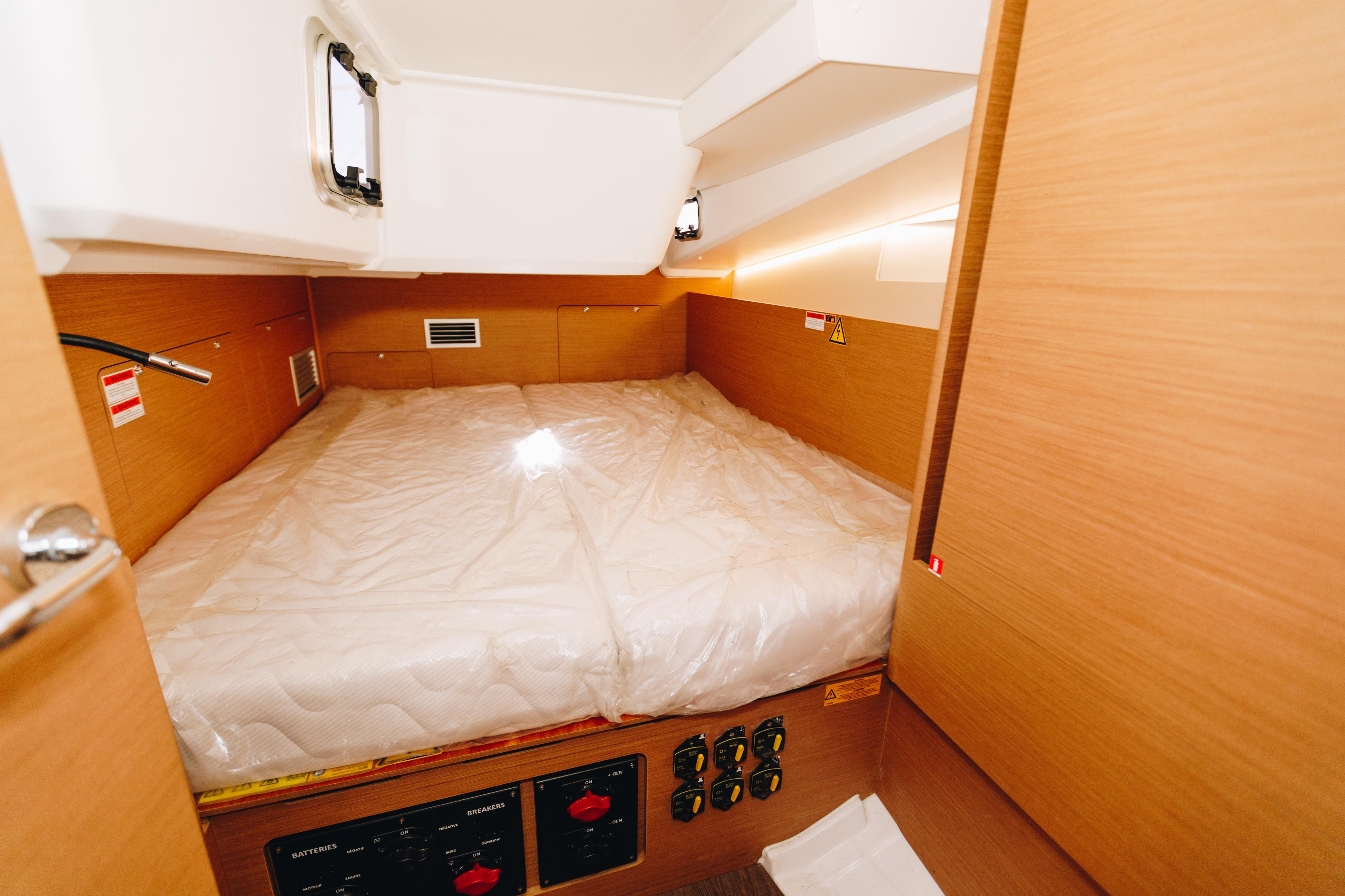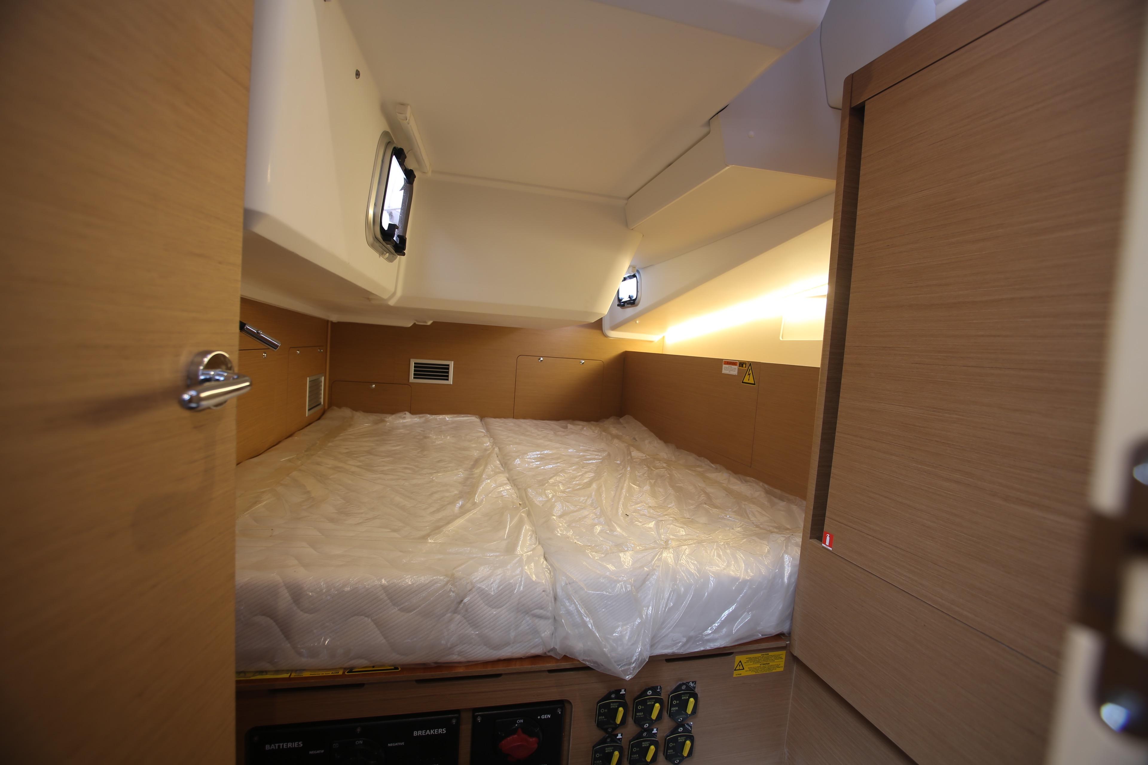 As with every Sun Odyssey, the cockpit ergonomics are second to none. Every sheet is cleverly led to the helm station, where the boat can be easily single or double handed. The massive cockpit lounge is framed by the iconic walk around decks, which make movement around the boat easier than ever before. However, the game changer comes when the convertible coamings, the unfolding seat backs, are set up as beds. The entire aft eight feet of the boat transform into a cushioned sun bathing deck.