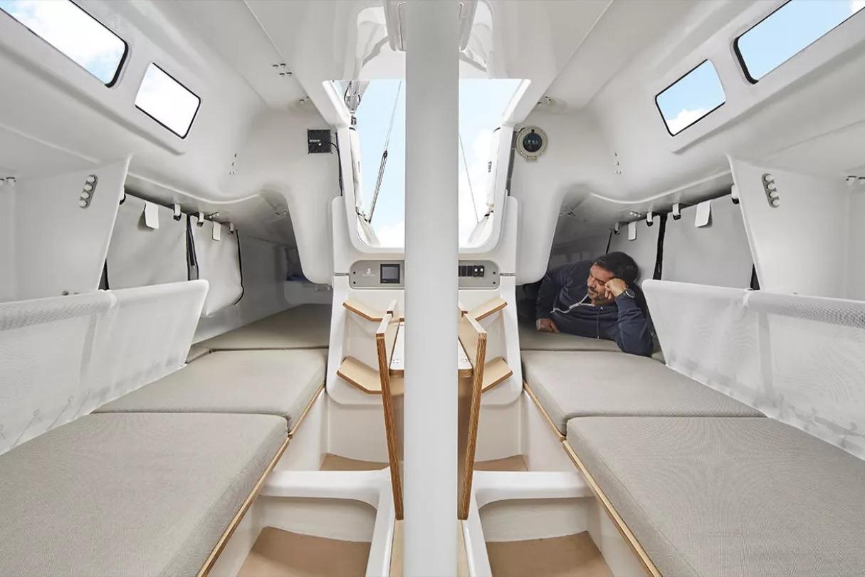 Carefully thought-out cockpit ergonomics, minimized and simplified deck controls, double winches, and a perfectly balanced steering system assure easy handling in single-handed, double-handed or fully-crewed setups.